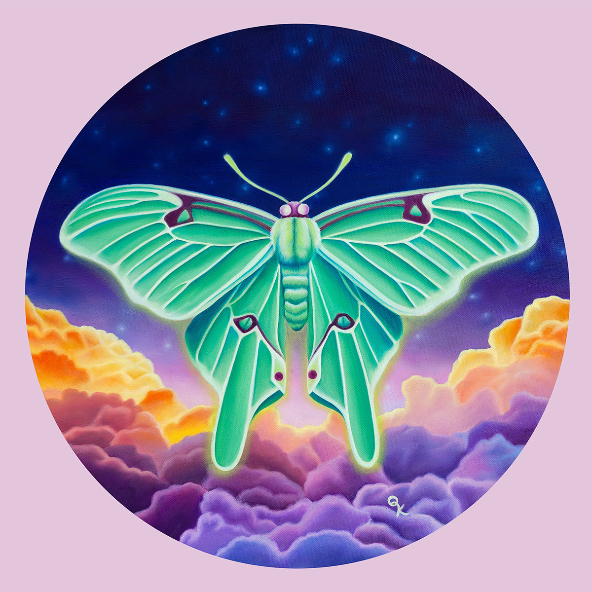 Discover a stunning series of fluorescent moths, capturing the ethereal beauty of transformation in vibrant detail. These pieces blend radiant colors to evoke a sense of otherworldly and spiritual evolution. Perfect for collectors with a love of color, each print invites contemplation on the delicate balance between fragility and resilience in nature's metamorphosis.